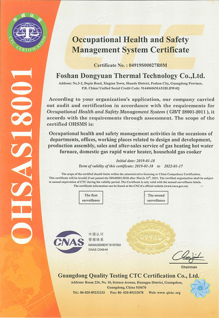 O sucesso de DONGYUAN para obter os certificados ISO9001, ISO14001 e OHSAS18001, nossas caldeiras e aquecedor de água conforma-se aos pedidos do certificado de CU-TR e o padrão europeu, faz-lhes venda quente dentro pelo mundo inteiro, especialmente em Rússia, em Irã, em Azerbaijão, em Usbequistão, em Israel e no outro mercado europeu e no mercado de Southest Ásia.